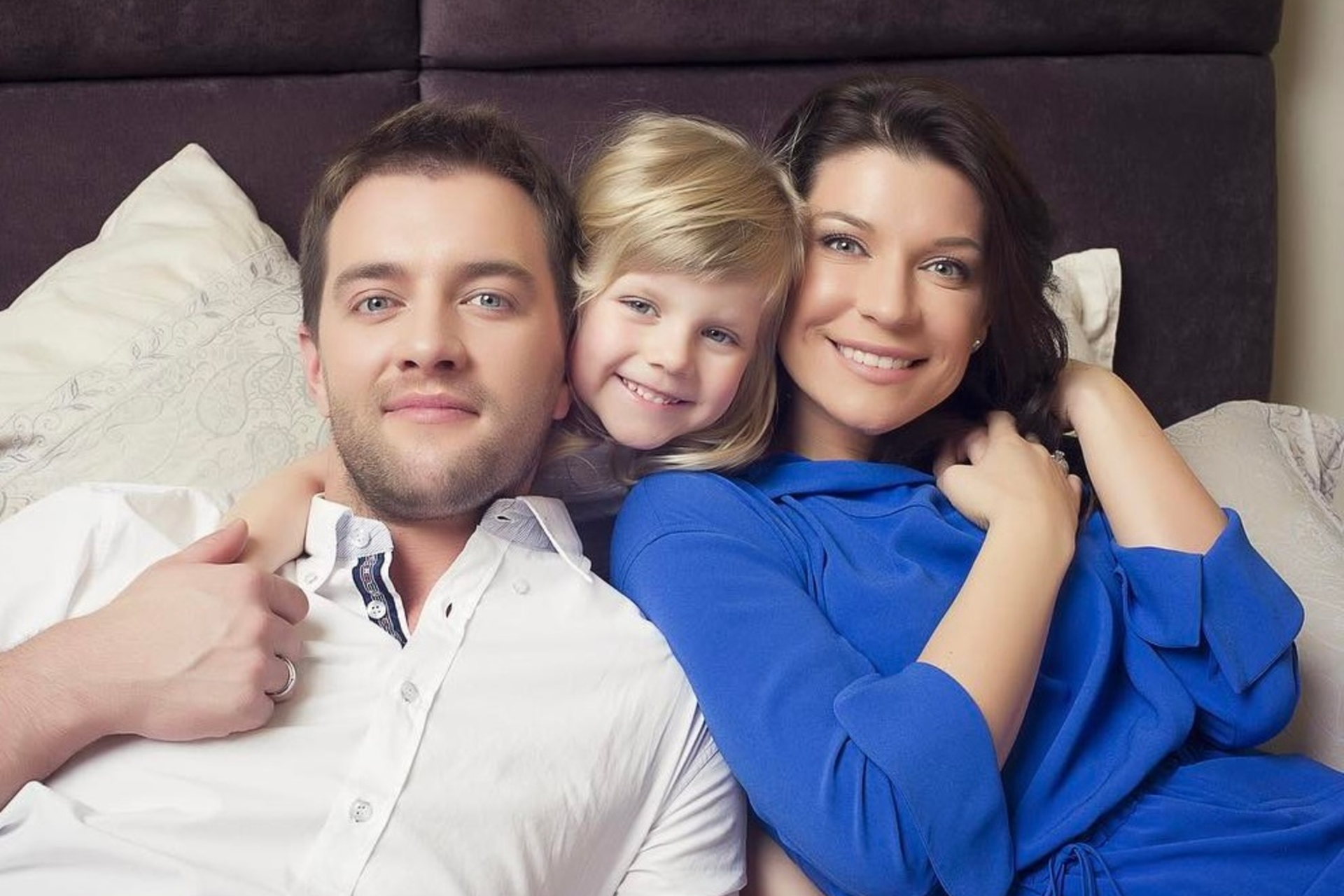 Екатерина Волкова, её муж Андрей Карпов и дочь Елизавета