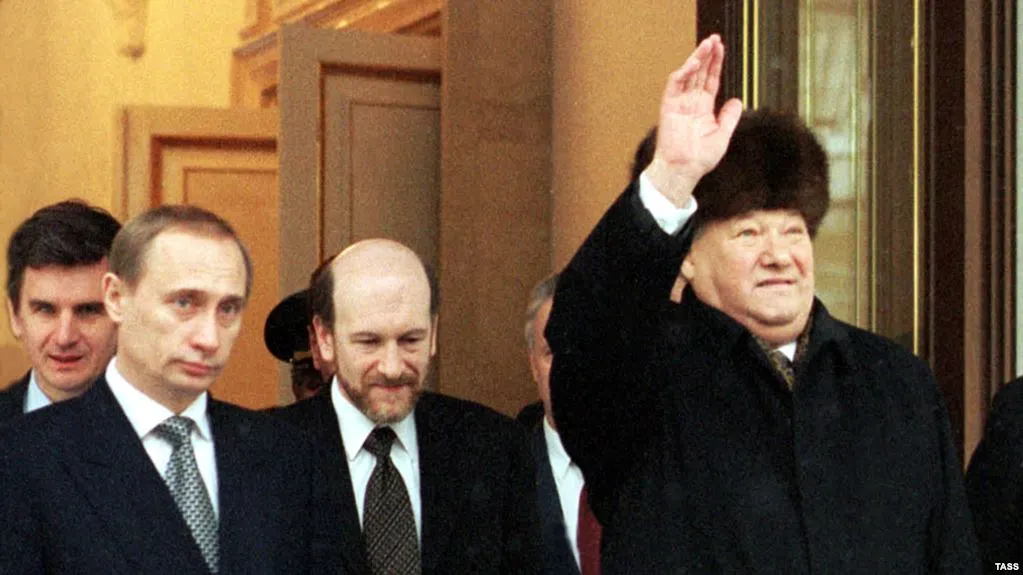Команда АП нашла преемника в лице Владимира Путина. Определение критериев этого поиска, равно как и сам поиск, были довольно долгой и непростой историей. Передача власти Путину и следующие за этим президентские выборы состоялись благодаря усилиям команды АП. На уникальном фото — Александр Волошин с участниками его политического кейса: Борисом Ельциным и Владимиром Путиным.