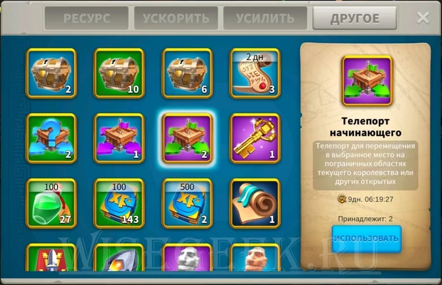 Телепортироваться по территории королевства достаточно просто. Нужно зайти в предметы и найти там телепорт, если он у Вас имеется. Телепорты лежат во вкладке «Другое». Выбрав телепорт и нажав кнопку «Использовать» Вы попадаете на карту королевства и выбираете новое место для вашего города. Но есть ряд ограничений: нельзя телепортироваться на горы, реки, леса, варваров, других игроков и т.д. Можно встать только на свободную равнинную местность. В зависимости от того будет ли новое место на территории Вашего альянса или нет — осуществляется расход либо телепорта по территории, либо целевого телепорта. Когда новое место под городом свободно — кружочек светится зеленым, когда занято — красным. Используя случайный телепорт новое место выбирается без вашего участия.