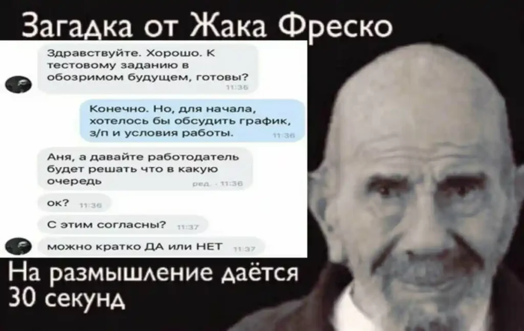 В сентябре-октябре 2020 года набрал популярность другой мем про футуролога — «Загадка от Жака Фреско». Чаще всего это абстрактная шутка, где у пользователя спрашивают либо абсурдную вещь, либо вместо загадки — картинка, где содержится какой-либо вопрос.