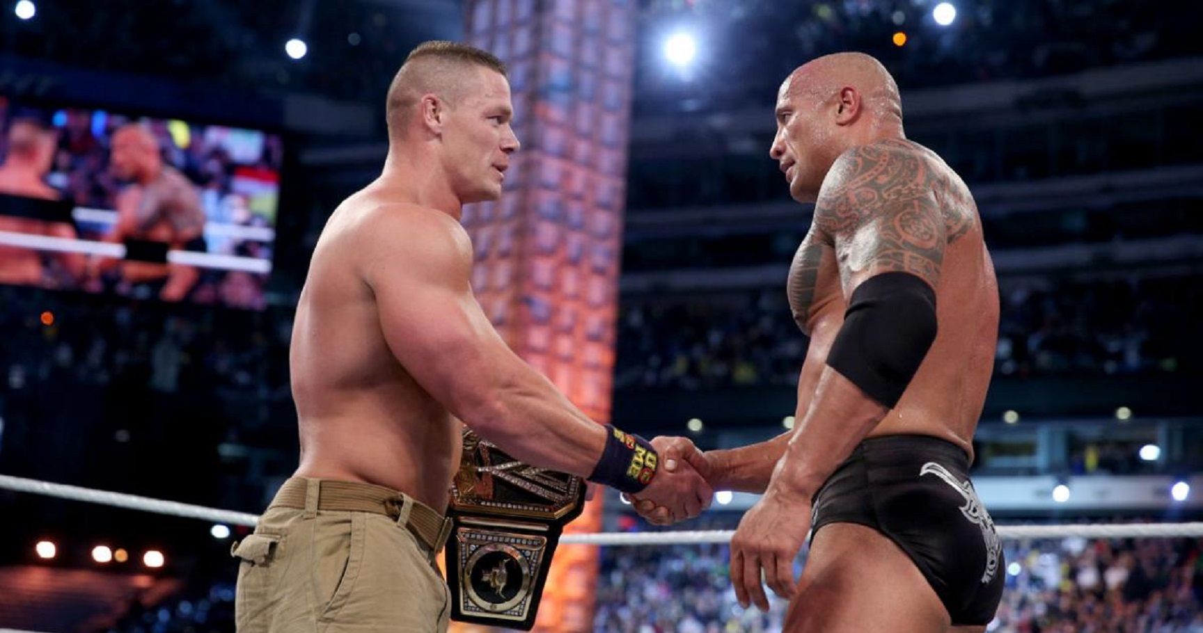 Immediately following the match, the two shook hands and The Rock even went as far as to raise Cena’s hand and praise the new champion as the show went off the air. The Rock during the match when he tore his abdominal and adductor tendons off his pelvis. However, it was all worth it, as WrestleMania 29 , WWE’s highest grossing event.