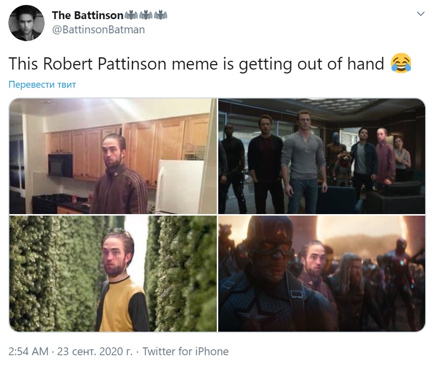 В своем инстаграме и на профессиональных фотосессиях актер выглядит слишком гламурно. Поэтому обычный снимок, где Паттинскона не узнать, привлек столько внимания. По данным сайта Know Your Meme, Джош Сафди, сценарист и режиссер, опубликовал в соцсетях кадр с актером на кухне (сейчас фото удалено из инстаграма). Небритый Паттинсон одет в спортивную олимпийку и камуфляжные штаны, напоминая обычного человека. Актер играл в фильме «Хорошее время» гангстера, отсюда такой нелепый вид. Чтобы лучше вжиться в роль, Паттинсон сменил имидж, устроился на автомойку и консультировался с бывшим заключенным.