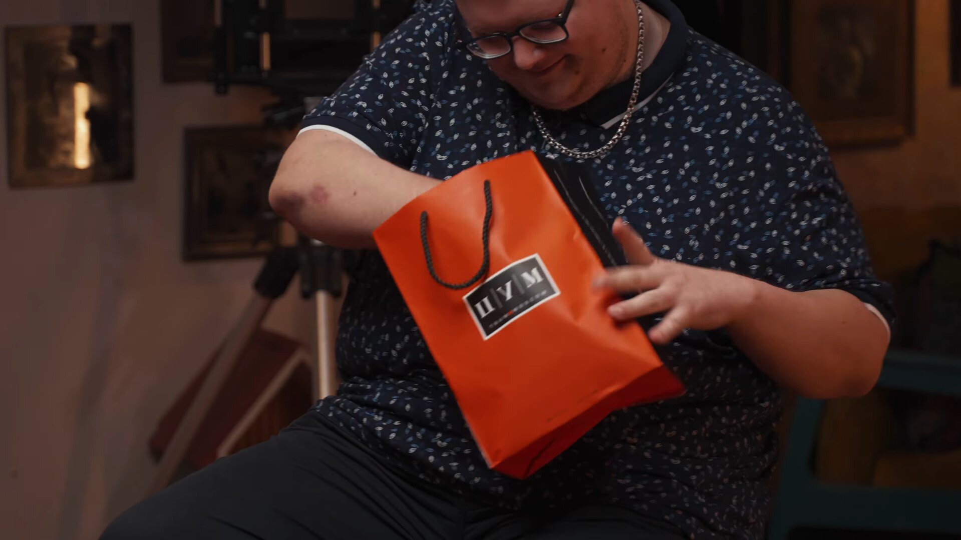 Евгений подарил Бумычу еще один подарок – трусы в пакете из ЦУМа.