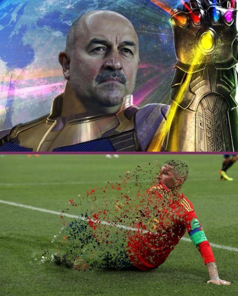 После игры с Испанией в сети появились фотожабы на Черчесова в совершенно разных амплуа. Где-то Станислав предстает в образе революционера Че Гевары, а где-то в роли суперзлодея вселенной Марвел — Таноса. Разумеется, продолжаются и шутки про усы Черчесова, хотя к ним давно уже все привыкли.