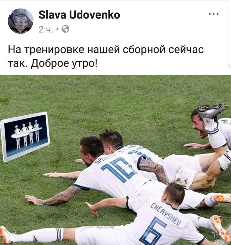 Совершенно другие эмоции вызвала фотография, на которой балерины Большого театра смотрят за игрой сборной России за кулисами во время балета «Раймонда”. Балет, один из символов русской культуры, тоже болеет за наших.