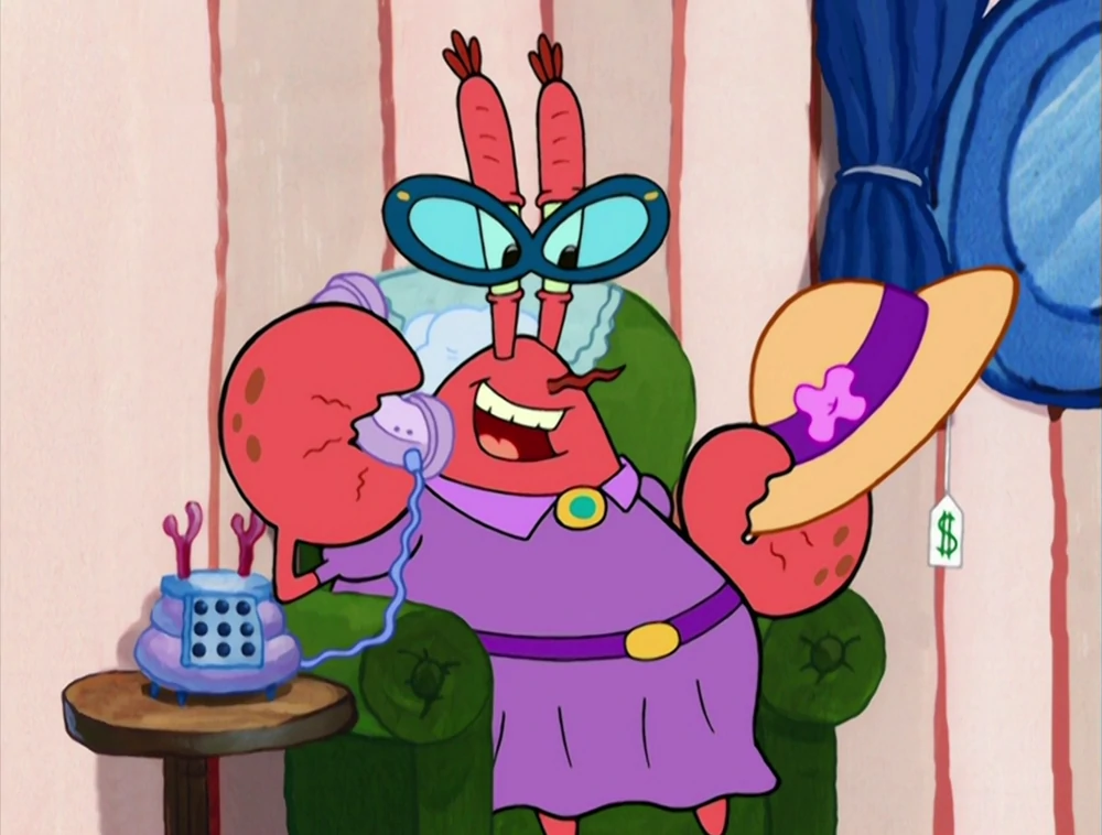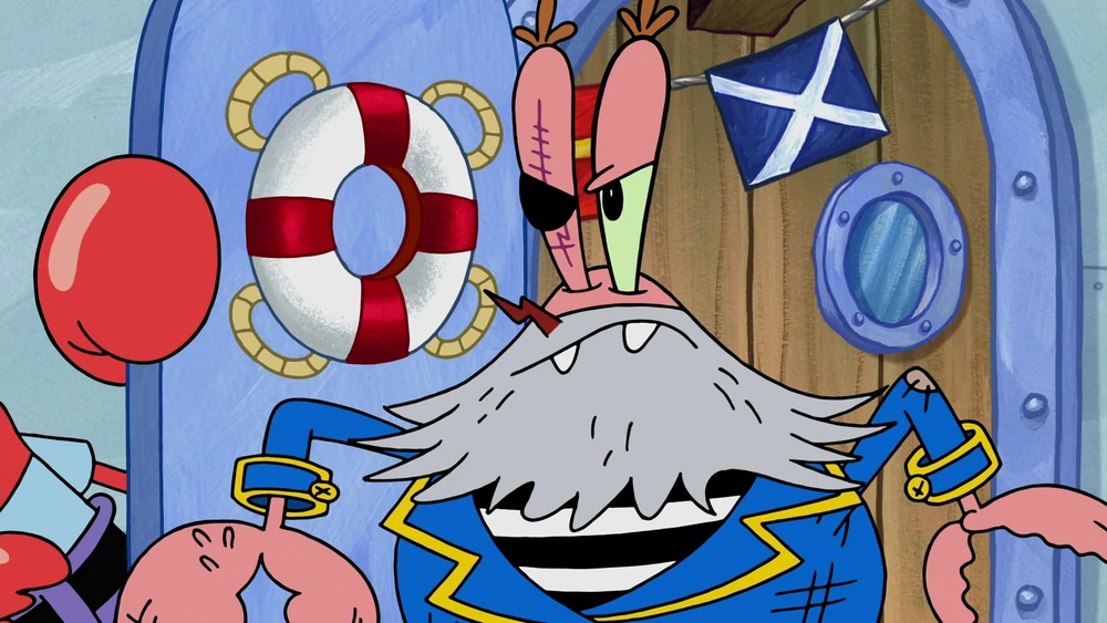 Мистер Крабс даже в самом пилотном эпизоде вызывал у зрителей смех. Он отправляет Губку Боба с поручением, которое он считает дурацким, пока множество автобусов не окружают Красти Краб, заставляя его насторожиться. Затем он начинает нюхать воздух (или воду в данном случае), в результате чего смотрит на него.