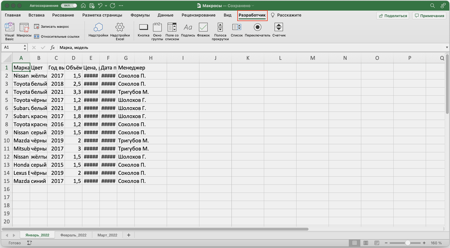 То же самое можно сделать и на третьем листе для таблицы продаж за март. Более того, этот же макрос можно будет запустить и в следующем квартале, когда сервис автосалона выгрузит таблицы с новыми данными.