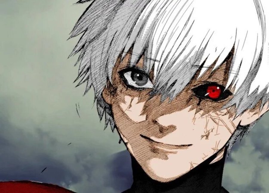 Главный герой сериала Канеки Кен. Красно-черные глаза — один из отличительных признаков гулей