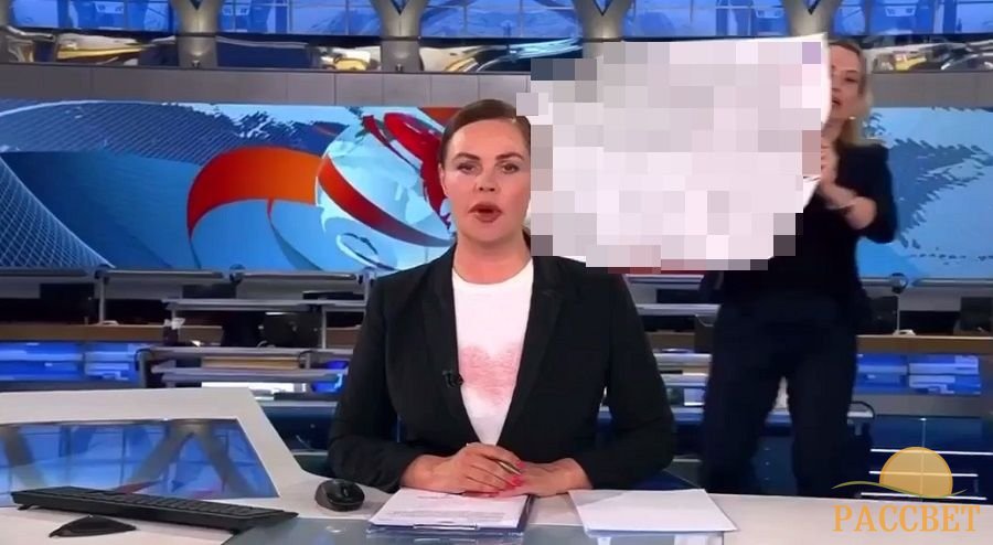 В прямом эфире выпуска новостей «Время» на Первом канале 14 марта выбежала девушка с пацифистским плакатом, который призывал остановить военную операцию России в Украине. Она появилась позади ведущей Екатерины Андреевой.