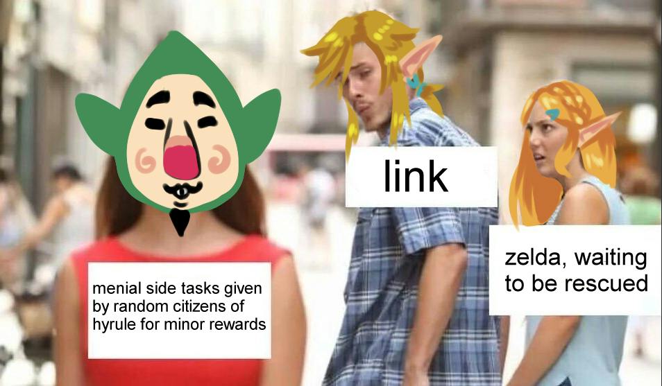 Here is Link getting distracted by a side quest instead of rescuing Zelda:
