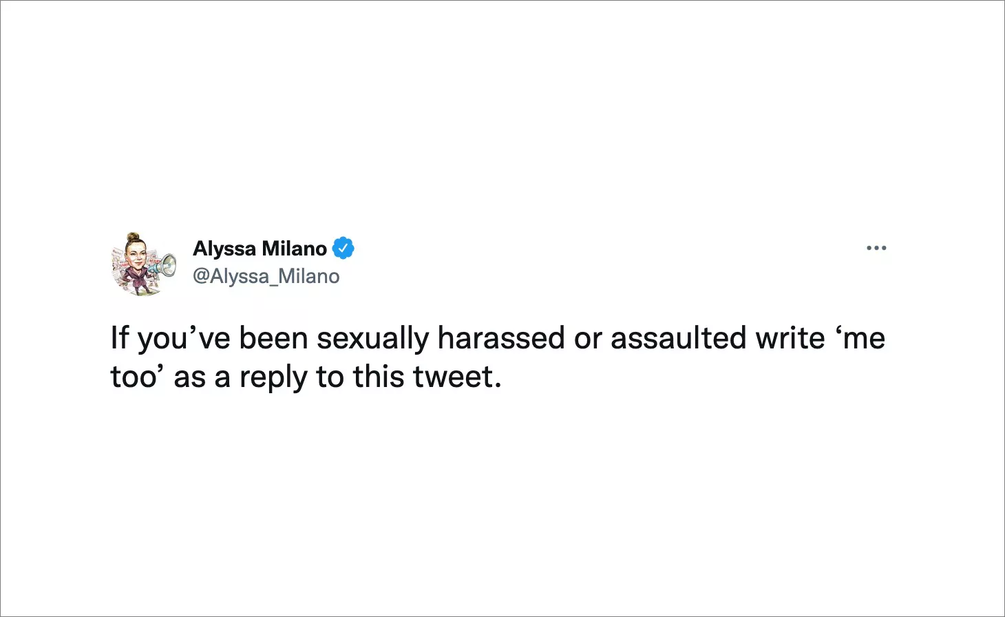 After Milano’s tweet, Twitter users posted the hashtag almost a million times within two days, according to Twitter. The movement spilled over to Facebook, too, where about 4.7 million users shared 12 million posts in fewer than 24 hours. Years later, people continue to share their stories with the hashtag #MeToo across social media platforms.