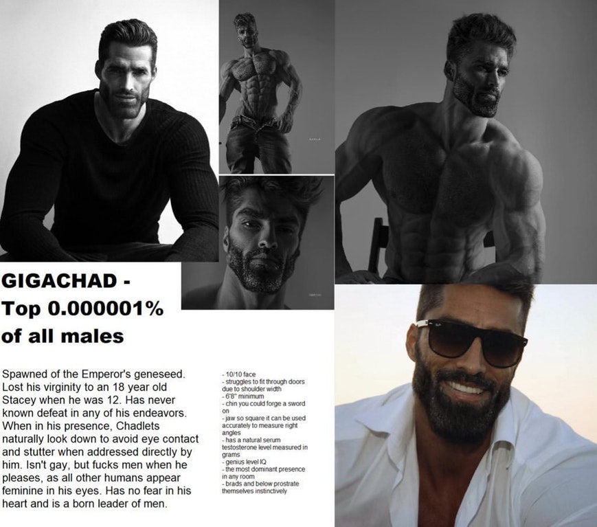 GigaChad означает привлекательный, мускулистый и уверенный в себе мужской.