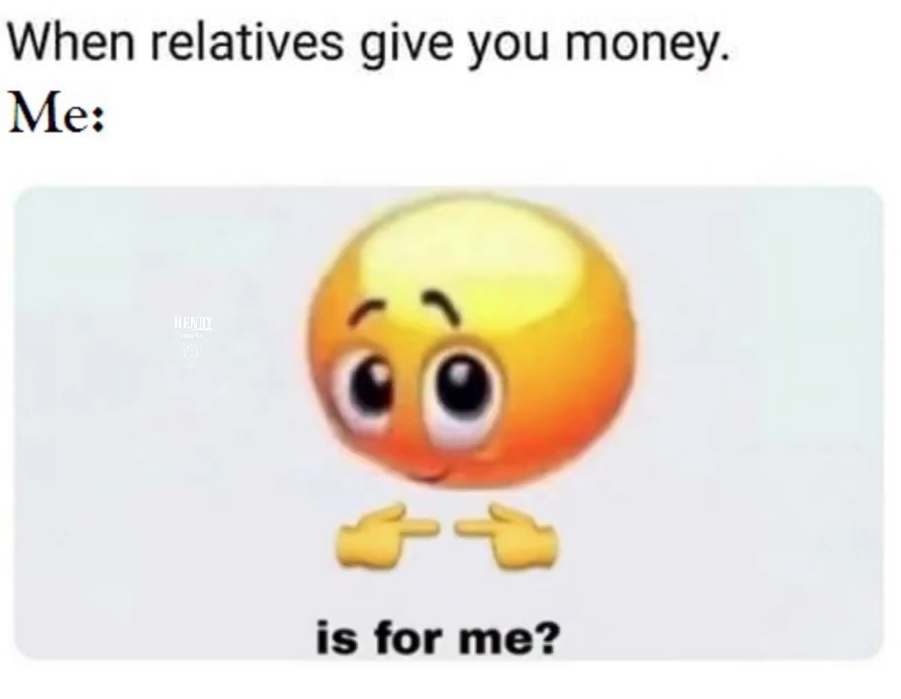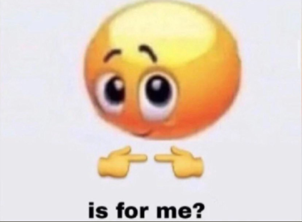 Со временем мем стал вообще обо всем. Застенчивый смайлик вопрошает “Это для меня?”, когда речь идет о еде, деньгах и нервах. Вот только за его стеснением, скорее всего, скрыта глубокая ирония.