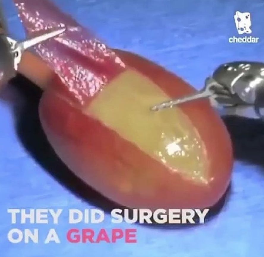 A system used to perform delicate surgical operations, called the da Vinci Single-Site, got a lot of attention for a video that demonstrates how it works—on a grape. A screengrab of the Cheddar video, with the caption “They Did Surgery on a Grape,” went viral on meme accounts. And that’s it. People thought it was really funny that doctors performed surgery on a grape.