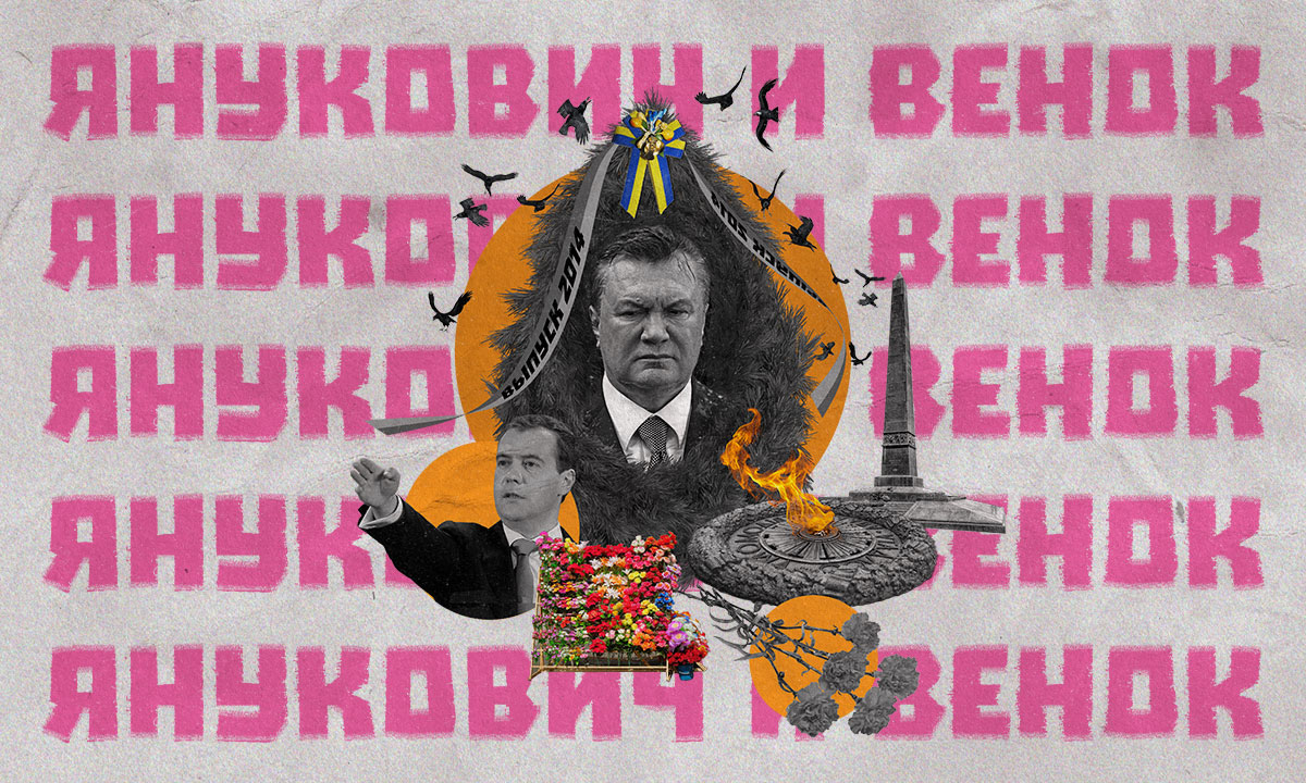 17 мая 2010 года президента Виктора Януковича чуть не сбило с ног траурным венком. Вместе с Дмитрием Медведевым во время сильного ливня с ветром он возлагал венки к памятнику неизвестному солдату в Киеве. Венок Медведева остался на месте, но его на всякие случай придержала подбежавшая охрана. Атаковавший президента венок позже был выставлен на аукцион.