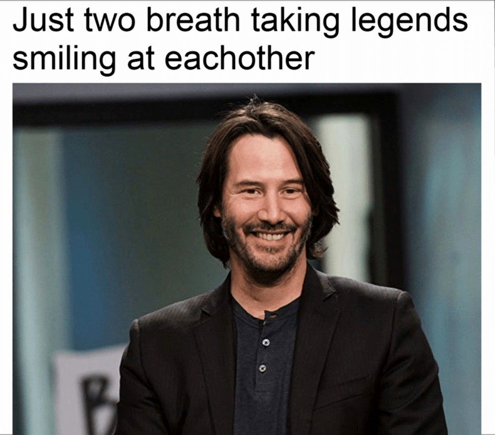 Then there’s those memes that only exist to remind you how great you are. Memes involving Keanu at this point are the epitome of that template, like this one involving the Wholesome Man of Breathtaking. How would you not feel better if Keanu came scrolling by, giving you a little jolt of self-love?