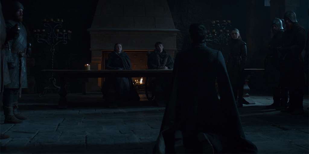 Тирион говорит Джону, что Дейнерис обезумела. Джон не соглашается с его словами. Дейнерис обвиняет Тириона в предательстве и заточает под стражу. Джон, видя это, начинает понимать, что Тирион был прав. Он убивает свою возлюбленную.