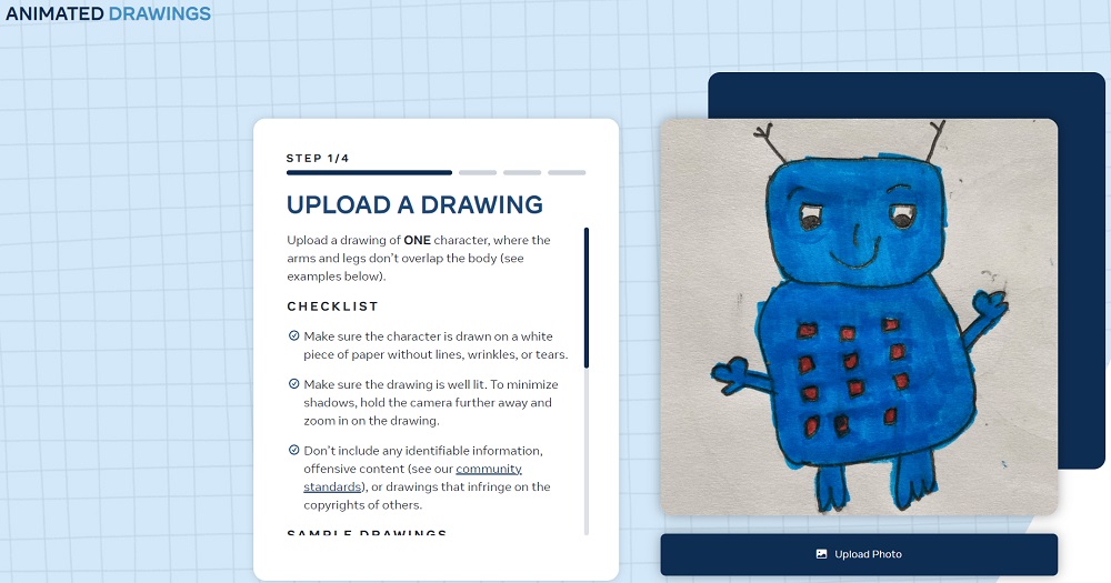 Meta AI, подразделение компании, ранее известной как Facebook, создало уникальный инструмент под названием Animated Drawings, который может автоматически анимировать рисунки человекоподобных фигур, созданные детьми. Если рисунок четкий, программа может идентифицировать фигуру, извлечь ее из большого рисунка и анимировать, чтобы она танцевала, ходила или даже выполняла движения «волны» телом.Примечательным достижением этого инструмента является то, что он был обучен понимать абстрактный стиль рисования детей. Первоначально программа с трудом распознавала рисунки, на которых люди были изображены нетрадиционным образом, например, в виде пятна с бесформенными конечностями. Разработчикам пришлось научить инструмент распознавать широкий спектр стилей, которые дети используют для рисования людей. Команда предоставила подробную информацию о процессе разработки в своем блоге.Зайдя на сайт, вы столкнетесь с демонстрацией, но вы можете сразу стартовать, нажав кнопку «Начать». Чтобы воплотить ваш рисунок в жизнь, необходимо выполнить четыре шага. Во-первых, вы должны загрузить изображение своего персонажа на белом листе бумаги без каких-либо линий, складок или разрывов. Убедитесь, что вы не включаете никакой дополнительной информации, такой как ваше имя, имя персонажа или дата.После загрузки рисунка вас попросят дать согласие на то, чтобы создатели сайта использовали ваш рисунок для своих исследований. Независимо от вашего решения, вы можете перейти ко второму шагу, нажав кнопку «Далее», который предполагает изменение размера.На третьем этапе снова нажмите «Далее», и вы увидите, что ваш персонаж отделен от фона и выделен. Если некоторые части тела персонажа не выделены, используйте инструменты перо и ластик, чтобы исправить это. Наконец, на четвертом этапе найдите суставы персонажа, которые будут использоваться для анимации персонажа с помощью данных захвата движения.Нажмите «Далее», и вуаля! Теперь вы можете заставить свое произведение искусства танцевать, двигаться, ходить или играть, выбрав анимацию на левой панели.