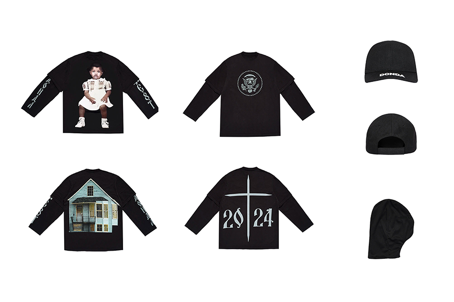 Устроив третью презентацию альбома «DONDA» в Чикаго, Канье представил еще один вид мерча. Зрители мероприятия получили возможность приобрести кепки и лонгсливы. На кепках вышито название пластинки. Черные лонгсливы украшены детским фото Донды и репликой дома детства Уэста, который он воссоздал на сцене стадиона. А лонгсливы с крестом и надписью «2024», по слухам, станут частью его промокампании на следующих выборах президента США.