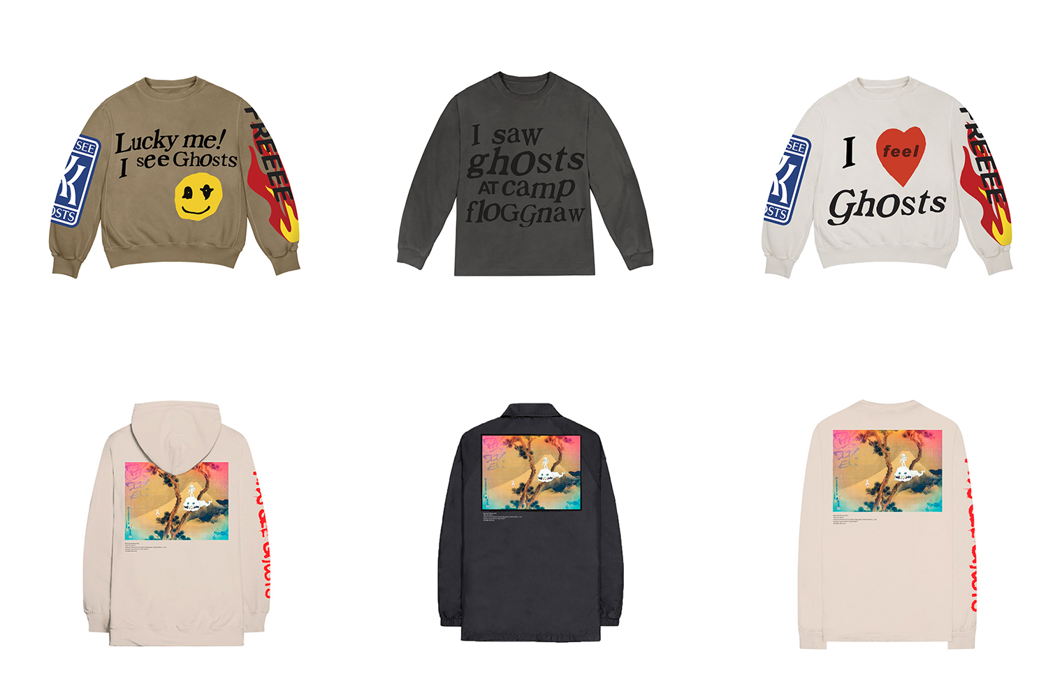 Многие были не в восторге от того, что летом 2018 года Канье Уэст выпустил целых 7 альбомов, но ключевым событием того времени определенно стал его совместный проект с Kid Cudi, «Kids See Ghosts». Вместе с лаконичным мини-альбомом также вышел отличный мерч. Первая партия одежды включала в себя бежевые футболки и худи с обложкой альбома, нарисованной Такаси Мураками. Над вторым релизом, ставшим более востребованным, работала Синтия Лью из Cactus Plant Flea Market. Разноцветные свитшоты и худи были покрыты словами «Lucky me! I see Ghosts» («Как мне повезло! Я вижу призраков!»), а также неаккуратно нарисованными смайликами и сердечками.