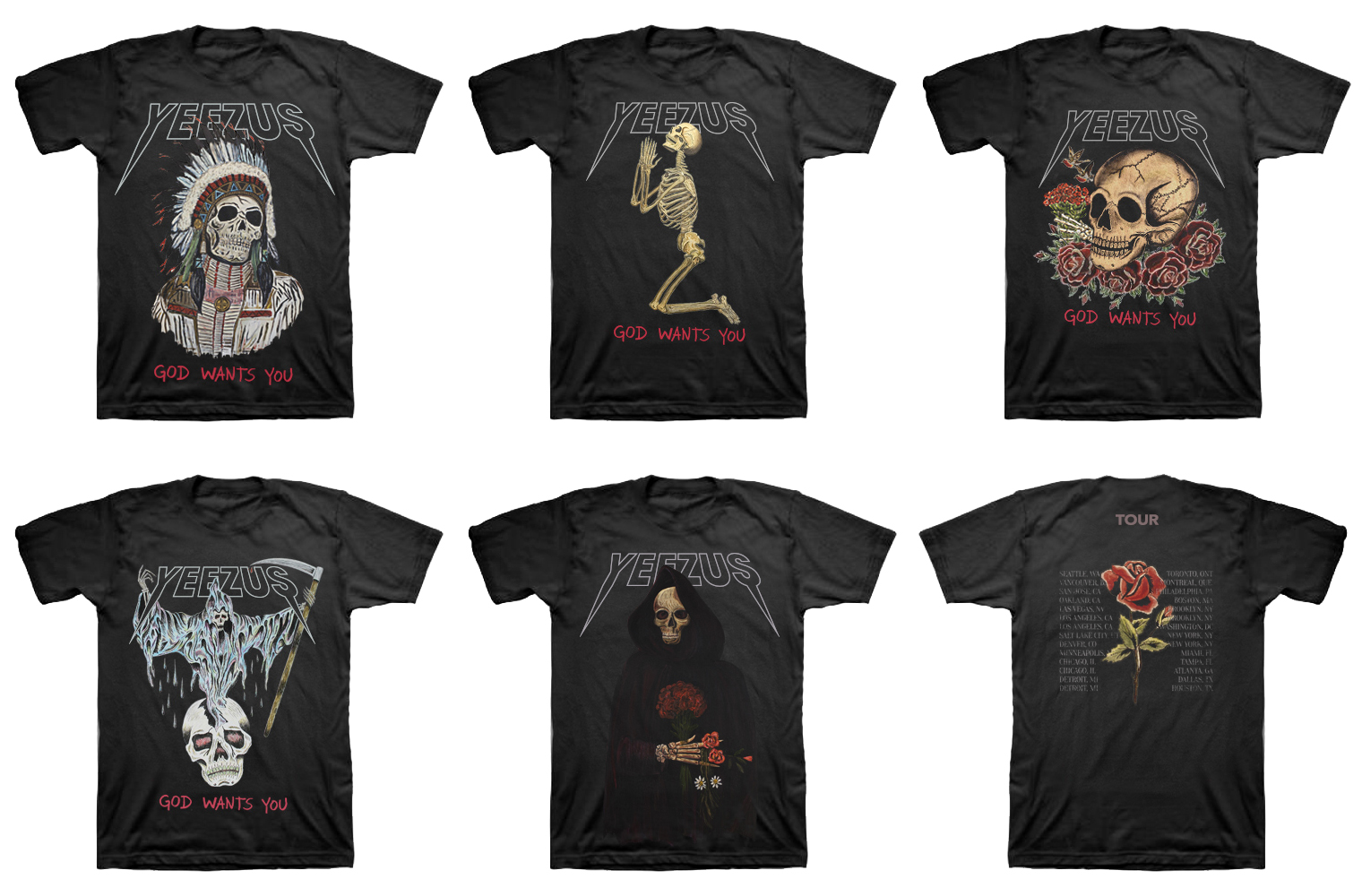 Можно предположить, что именно эта коллекция, выпущенная к туру «Yeezus», стала причиной, по которой многие исполнители начали прикладывать к своему мерчу больше усилий. Самый бунтарский проект Канье был дополнен идеально подходящей по тону одеждой. Графикой для мерча занялся художник Уэс Ланг, известный сотрудничеством с культовой хэви-метал-группой Metallica. Результатом его работы стали скелеты в традиционных головных уборах коренных народов США, в молитве склонившиеся на колени или одетые как Смерть с косой. В рамках этого тура также был выпущен знаменитый бомбер с нашивкой флага Конфедерации на рукаве. Несмотря на то, что Уэст пытался выставить это дизайнерское решение как захват контроля над расистским символом и придание ему нового смысла, он стал заметным мрачным пятном на отличной коллекции. Мерч к «Yeezus» был настолько популярным, что позже он даже вылился в более доступную линейку одежды, которую можно было приобрести в магазинах PacSun. В том году различные эксклюзивные вещи также появлялись на некоторых фестивалях вроде «Made in America» и «Bonnaroo», на которых Уэст выступил в качестве хедлайнера.