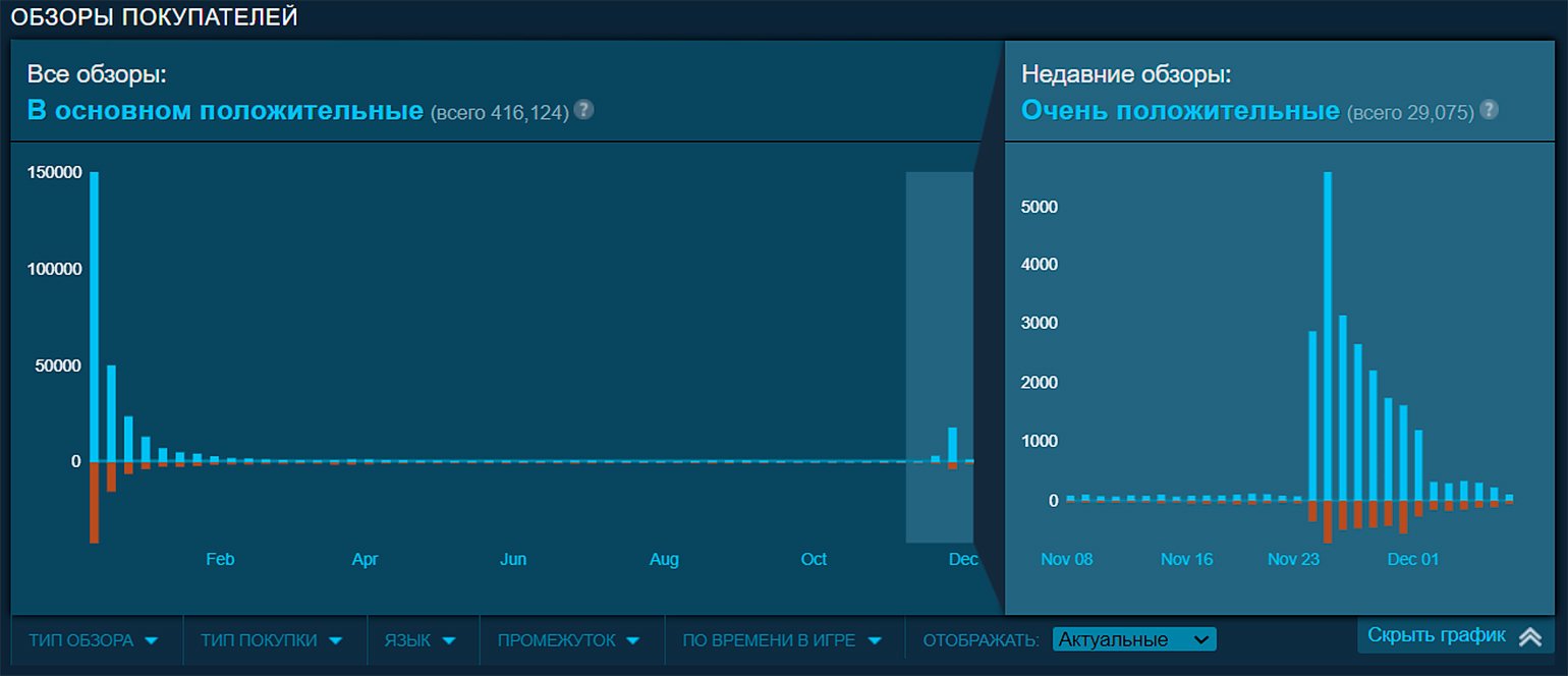 Но настоящее возвращение произошло в конце ноября, когда в результате осенней распродажи в Steam страница Cyberpunk 2077 получила приток от игроков, считающих её жертвой завышенных ожиданий.