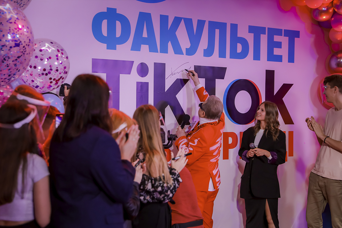 По завершении презентации молодежь и Поплавский сняли свой первый совместный ТikТоk. После чего Поплавский и руководители креативных групп, студдекан поставили свои никнеймы и автографы на масштабном баннере факультета ТikТоk, чтобы окончательно зафиксировать знаковое событие.