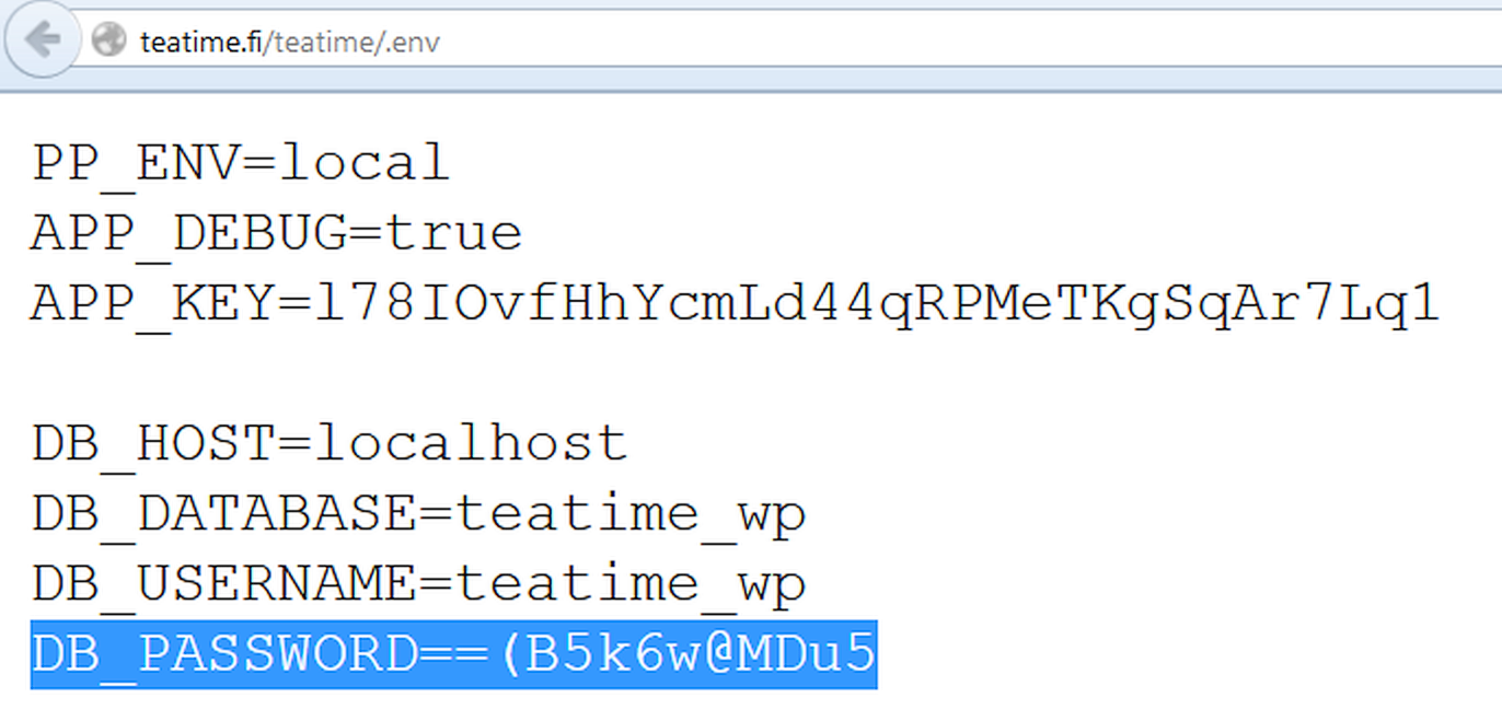Пароль к базе данных открыто хранится в конфигурационном файле