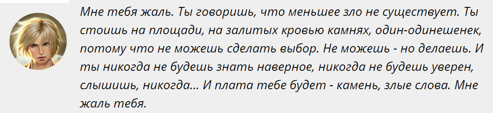 Впрочем, Дийкстра может оказаться не лучшим правителем. Да, он сможет отбить натиск Империи, а королевство севера обретет былую мощь. Но как это скажется на простых жителях? Где брать деньги на долгую войну? Сколько еще людей погибнет в борьбе за независимость? Выбирая сторону Дийкстры, остаются лишь одни вопросы. Так что лучшим решением будет поддержать друга. Не зря ведь Роше и Бьянка лично помогают нам в обороне Каэр Морхена.