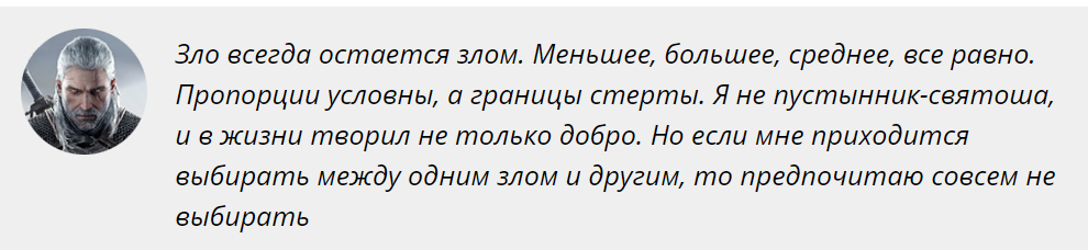Ведьмаку хочется думать, что он контролирует ситуацию и свободен в своих действиях. К сожалению, Геральт заблуждается. Ренфри показывает ему несостоятельность его позиции.
