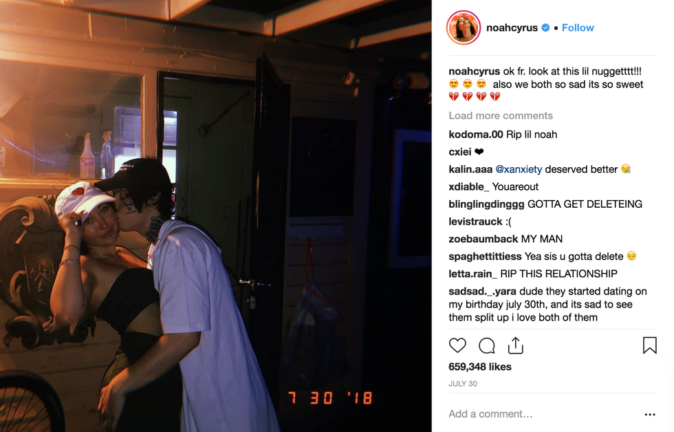 Lil Xan then addressed the breakup rumors, in a since-deleted Instagram video, saying, “If y’all think that meme is the reason I broke up with Noah, that is hilarious.” He convincingly alleged that Columbia Records — the label that represents both him and Cyrus — was behind the whole relationship. “It was something set up by, uh, Columbia Records … Columbia, uh, set it up to boost, uh, her like … y’know … like, everybody shit poppin’,” Lil Xan reportedly said. “Shout-out to Columbia Records, too, for setting up that fake relationship. I didn’t want to do it, to be completely honest … It was just added work to my schedule, you know what I mean?”