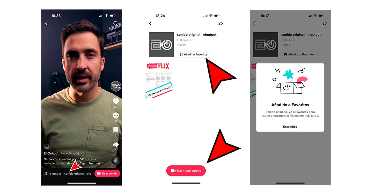 На этом же экране вы найдете две важные для вас кнопки: «Добавить в избранное» и «Использовать этот звук». Да, вы сможете сохранить этот звук в свой список любимых звуков или можете напрямую создать новую публикацию с уже выбранным звуком.