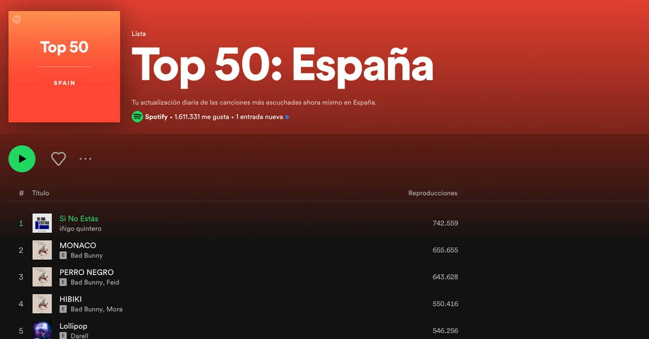 Зная это, вам просто нужно просмотреть список хитов вашей страны и обратить внимание на то, что звучит в последнее время. Например, на Spotify все, что вам нужно сделать, это просмотреть список хитов на испанском языке, чтобы узнать, какие из них являются хитами на данный момент