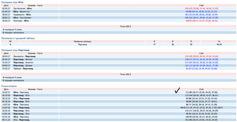 Также смотрим на личные встречи в этом матче. За последнее 5-10 игр наш аутсайдер должен выиграть хотя бы 40% игр в очных встречах и как минимум не проигрывать 90% оставшихся матчей в личных встречах с разрывом более 10 очков.