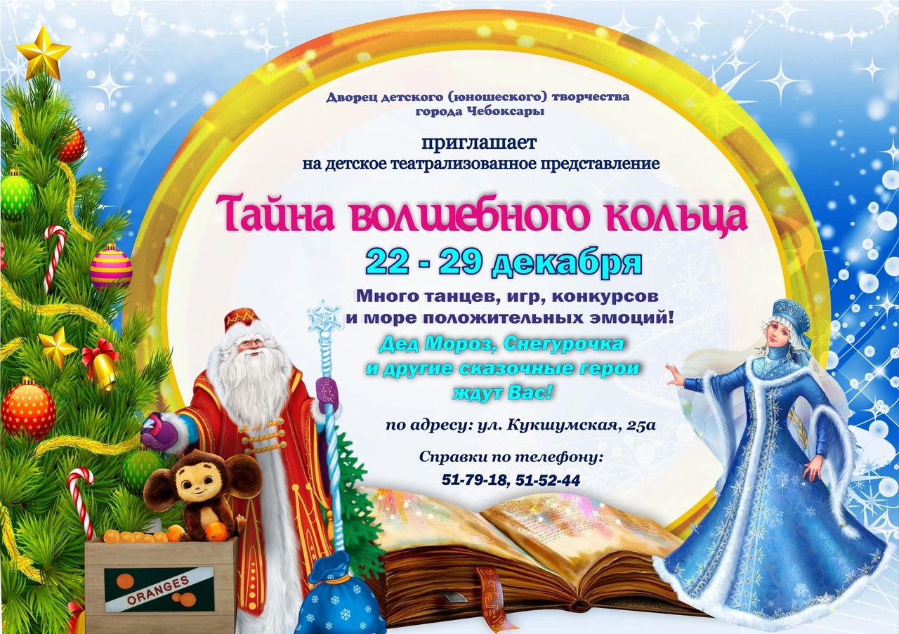 С 22 по 29 декабря ДДЮТ приглашает на новогодние представления для детей «Тайна волшебного кольца» (6+).