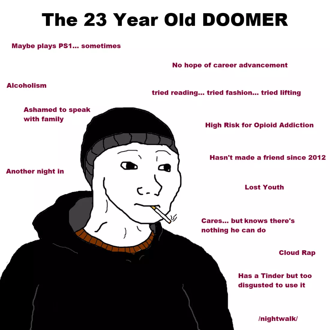 Также повлияло «застревание» думера между поколениями бумеров и зумеров: это применимо и к миллениалам, которые в процессе резких изменений технологий и общества будто бы не получили собственную эпоху. Всё это в итоге приводит к чувству потерянности и бессмысленности. Думера сложно встроить в теорию поколений: несмотря на обозначенные рамки, тут главное — не возраст, а внутреннее подавленное состояние.