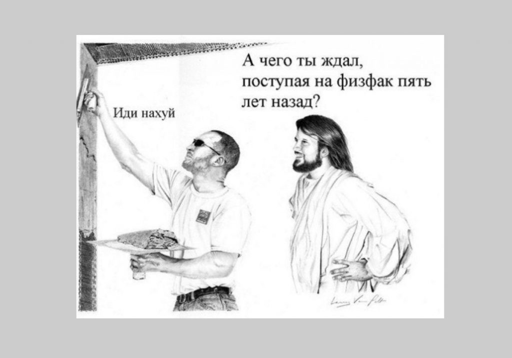 Картинки явно взяты из какой-то душеспасительной брошюрки, которыми перекормлены американцы. Манера подписей — как и на 4чане, но темы уже наши. Английских картинок тысячи.