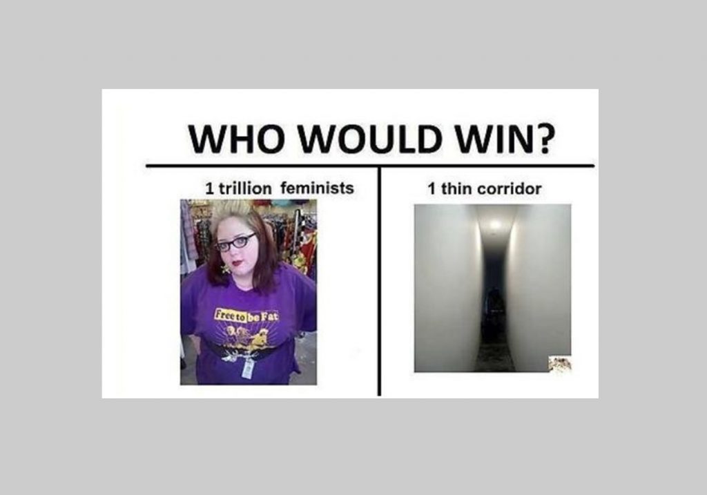 Здесь утверждение об абсурдности обсуждения темы виртуального насилия над женщинами формулируется с помощью помещения самого вопроса о насилии в такой фрейм, где вопрос самоуничтожается. Эта картинка не преследует цели оскорбить чьи-нибудь чувства. Однако нельзя исключить, что кто-то сочтет ее оскорбительной.