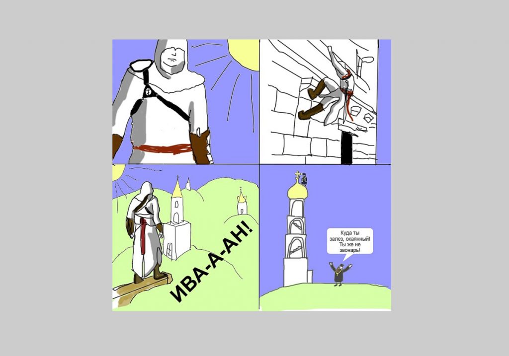 Это вот полностью оригинальный русский контент. Сразу на нескольких чанах — Дваче, Доброчане и Ычане самозародилась история про симпатичного монаха Ивана, который постоянно витает в облаках, представляет себя героем разных игр и фильмов. Крик «Иваан!» возвращает его к реальности. Существует не меньше сотни таких комиксов разной степени удачности.