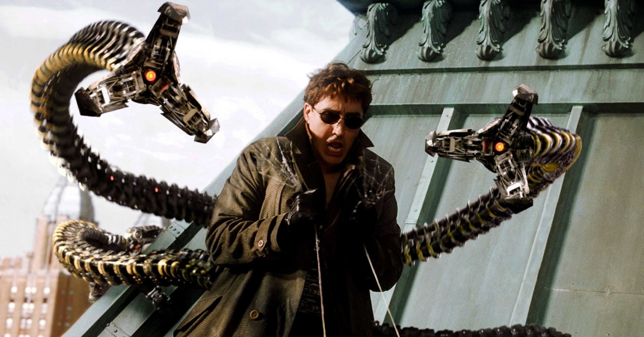 Во втором фильме, Человек-паук 2, нам удалось встретить еще одного хорошо известного всем врага Человека-паука: Доктор Осьминог. Речь шла о другом сумасшедшем, которому удалось (случайно, да) прикрепить конструкцию с четырьмя роботизированными руками, которая служила инструментом атаки и защиты от Человека-паука. Самое любопытное во всем этом злодее то, что он единственный, кого Человеку-Пауку еще ни разу не удалось победить ни при каких обстоятельствах.