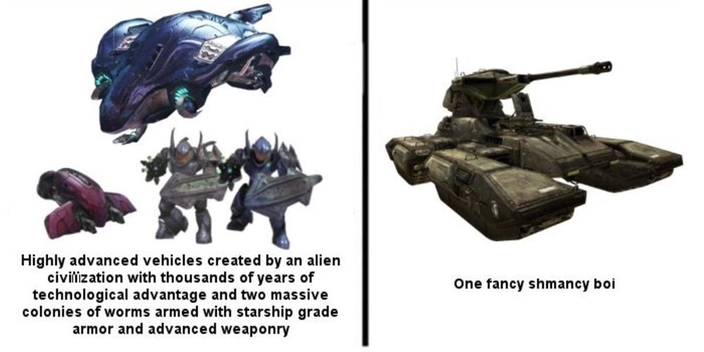 Это одна из проблем, с которой сталкивается большинство писателей-фантастов, когда они представляют инопланетный вид, с которым человечество должно бороться. Даже если человечество находится в будущем на несколько столетий, как человечество в Гало, похоже, что люди по-прежнему придерживаются оружия и технологий, которые не так уж далеки от того, что есть сейчас в 2020 году, даже если у них есть космические обтекатели. Если он не сломан, не ремонтируйте, должно быть, это то, с чем они собираются, поскольку каким-то образом одного стандартного танка ККОН достаточно, чтобы вывести из строя некоторые из самых передовых инопланетных технологий, которые Ковенант создавал годами.