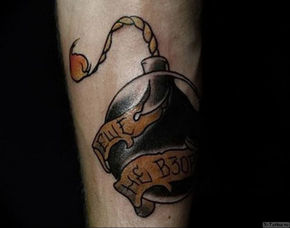Рядом с бомбой, почти что на локте, набита мини-тату якоря, как символ преданности.