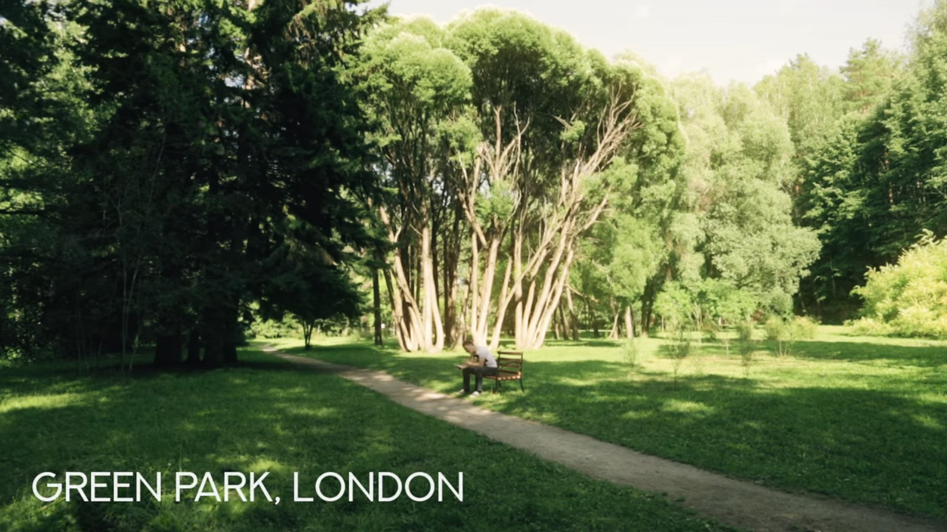 Именно в этот момент мы застаём героя, надпись и парк соответствуют.